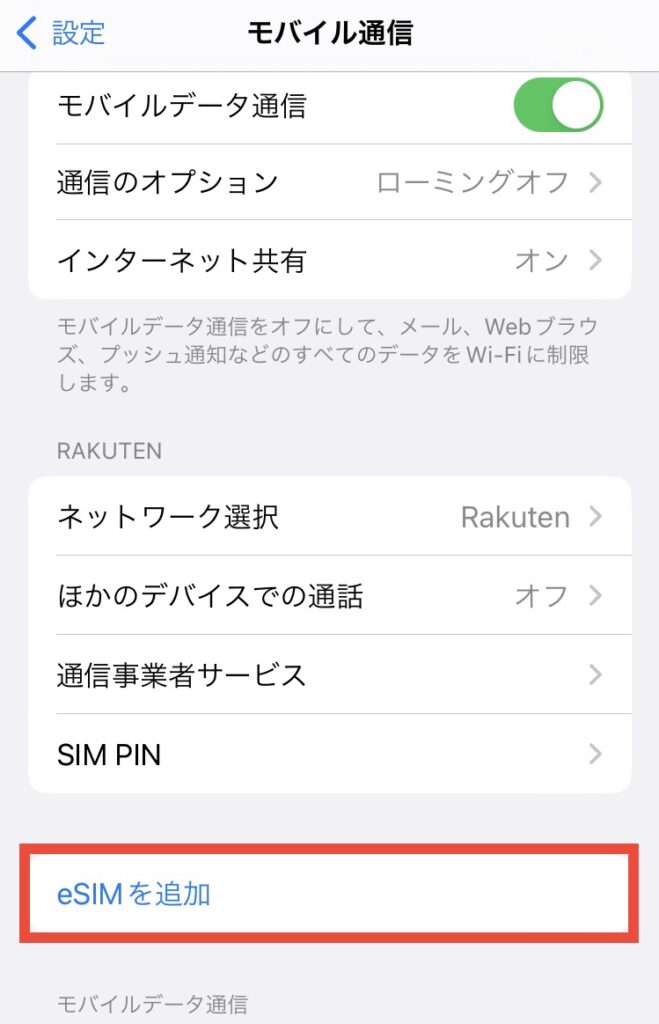 「設定」アプリを開く > 「モバイル通信」を選択 > 「eSIMを追加」または「モバイル通信プランの追加」の表示があれば、eSIM対応機種です。